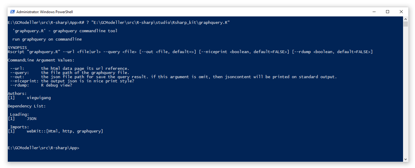 我们在学习上面的解析示例中,都可以看见,所有的查询测试都是通过执行一个名叫graphquery.R(完整的代码可以在Github上查看这个R#脚本)的R脚本之中来完成的。这个脚本是我为了平时工作方便专门编写的一个执行graphquery的命令行工具。其内容非常的简单,就是接收一个url,然后执行http请求得到网页文本,之后将查询语句和目标html文档传递进入GraphQuery的查询引擎中完成整个查询操作。整个脚本的核心函数就是下面的一个处理流程: