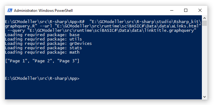 可以看到,在上面的R#脚本代码之中,我们最开始先执行一个http请求得到目标文档,然后解析为DOM文档树,最后在这个DOM文档树的基础上执行GraphQuery文本查询