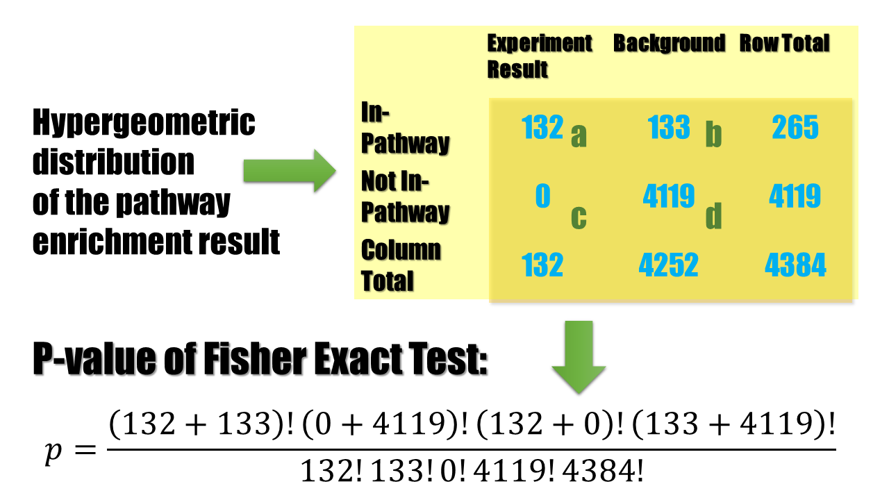 在拥有了需要进行分析的目的基因列表之后,我们就可以在所创建的Background的基础上进行置换检验,也就是富集计算分析了。最常见的置换检验为Fisher精确检验。