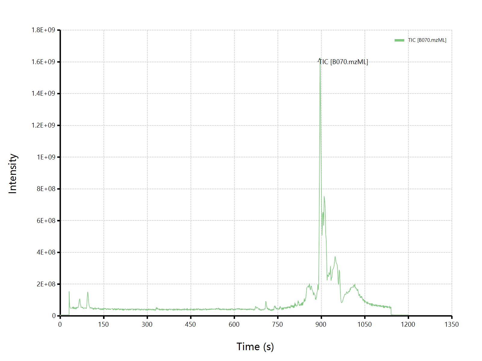 TIC色谱图是将每一个scan时间点上的所有离子的响应度加起来的总和对保留时间作图。BPC色谱图的话,则是每一个scan中最高的信号响应度对保留时间作图。