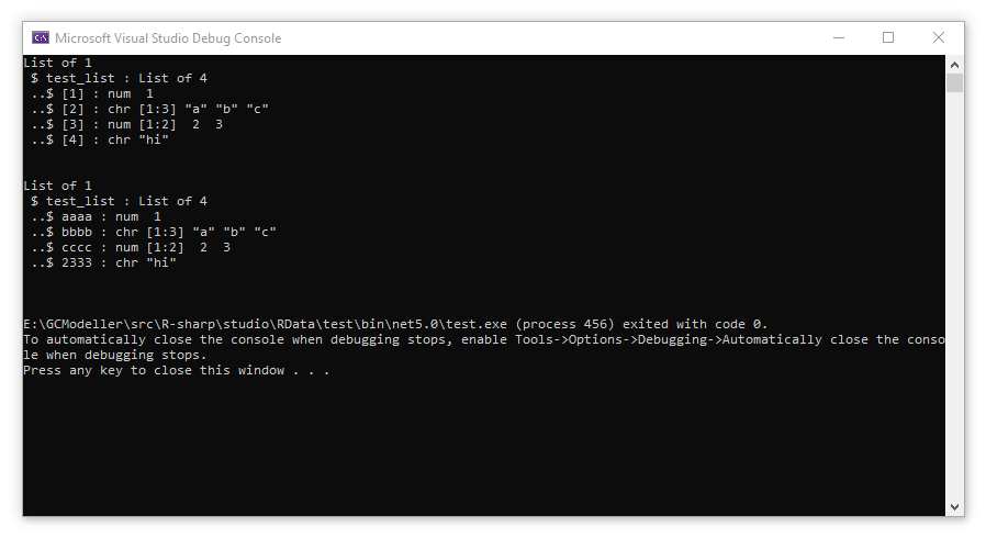 执行一下,可以看得到,在R#环境之中的RData数据集加载结果与R环境中的原始数据之间保持一致。