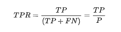 上面所示的混淆矩阵在计算ROC曲线的时候起着非常重要的作用,因为ROC曲线绘制的时候所需要的X与Y轴的数据都会需要从这个矩阵中得到。对于ROC曲线,其X轴与Y轴的数据分别为True Positive Rate(真阳率,TPR)、False Positive Rate(伪阳率,FPR)。