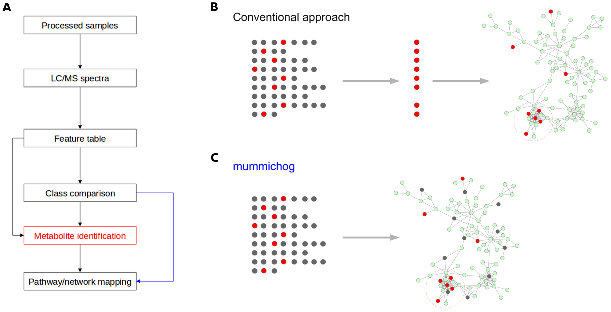 目前基于生物学共表达理论进行代谢物注释的方法中,比较经典的一个方法就是MetaboAnalyst程序包之中所使用到的注释方法:Predicting Network Activity from High Throughput MetabolomicsMummichog