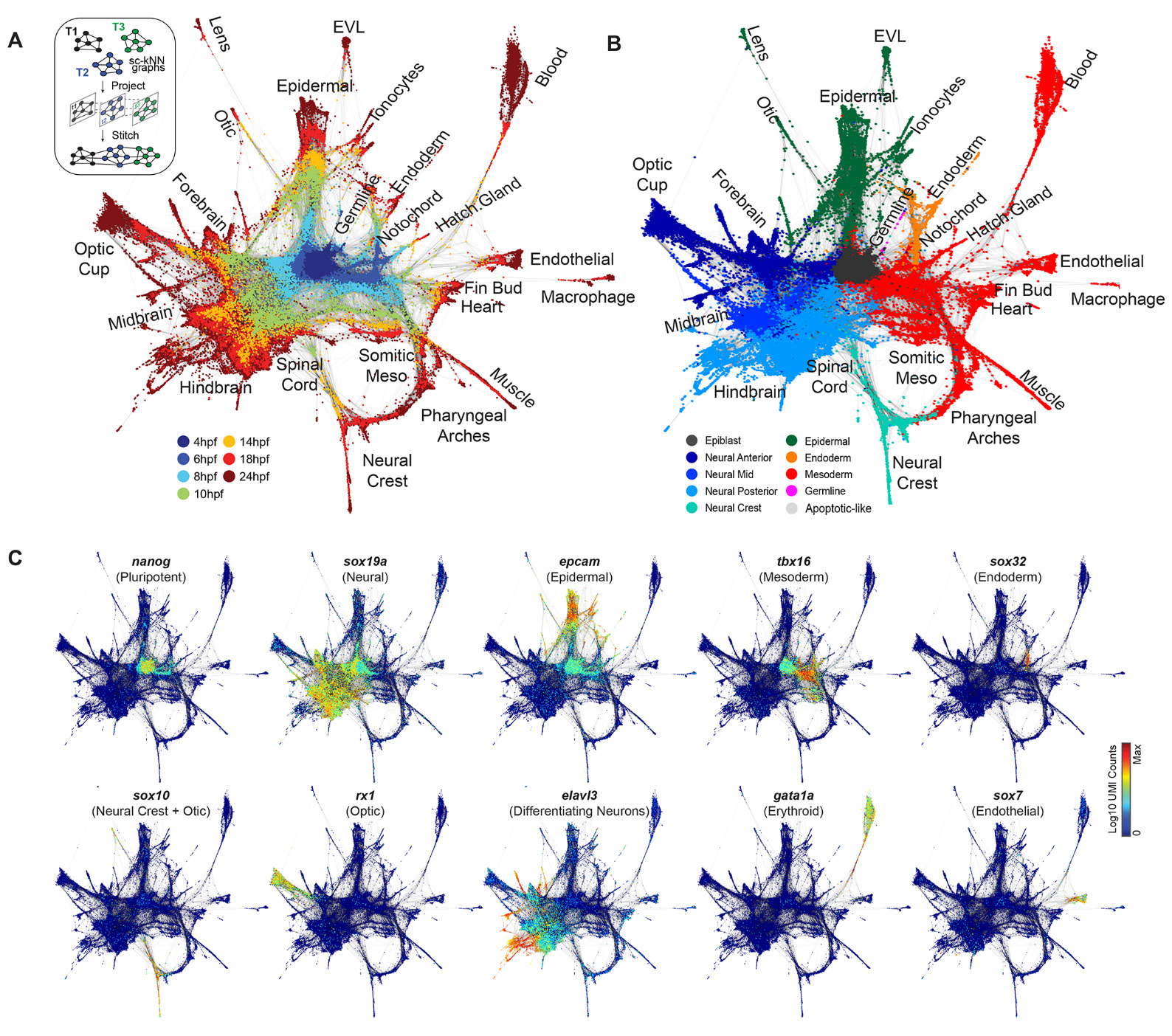 Single-cell mapping of gene expression landscapes and lineage in the zebrafish embryo. Wagner DE, Weinreb C, Collins ZM, Briggs JA, Megason SG, Klein AM. Science 26 Apr 2018. doi:10.1126/science.aar4362