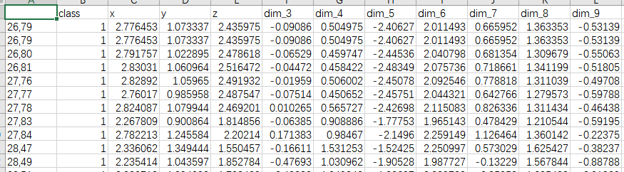 c. 第3,4,5列则是UMAP降维的前三个维度信息,可以基于这三个维度信息或者前两个维度信息进行相关的散点图绘制