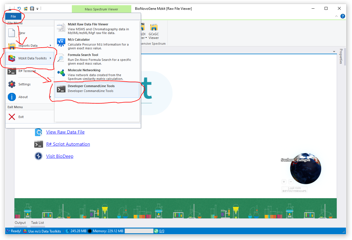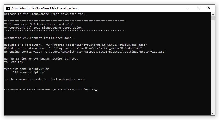 首先,通过软件左上角的【File】菜单入口打开软件的主菜单;接着可以在主菜单之中看见有【MZKit Data Toolkit】菜单栏;就是在这个菜单栏之中,展开后可以发现有一个命令行图标的东西【Developer CommandLine Tools】;对,就是它了,点击这个东西我们就可以进入到编程语言环境之中了。假设点击这个菜单之后,跳出来了下面所示的这样的一个命令行界面,那么就说明你已经成功打算开了质谱数据分析的开发工具环境:R#