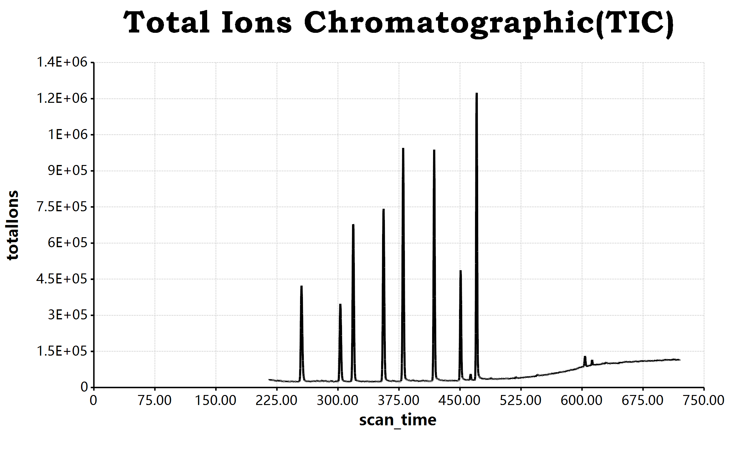 - total_intensity 顾名思义就是总离子流图的每一个保留时间点上所对应的总离子信号响应强度信息
