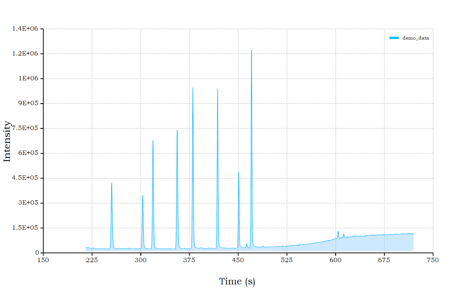 现在,我们已经拥有了绘图相关的数据,那现在我们可以做绘图操作了。首先我们祭出R语言的绘图利器,首先展示一下在R#编程语言环境之中通过ggplot进行总离子流色谱图的绘制: