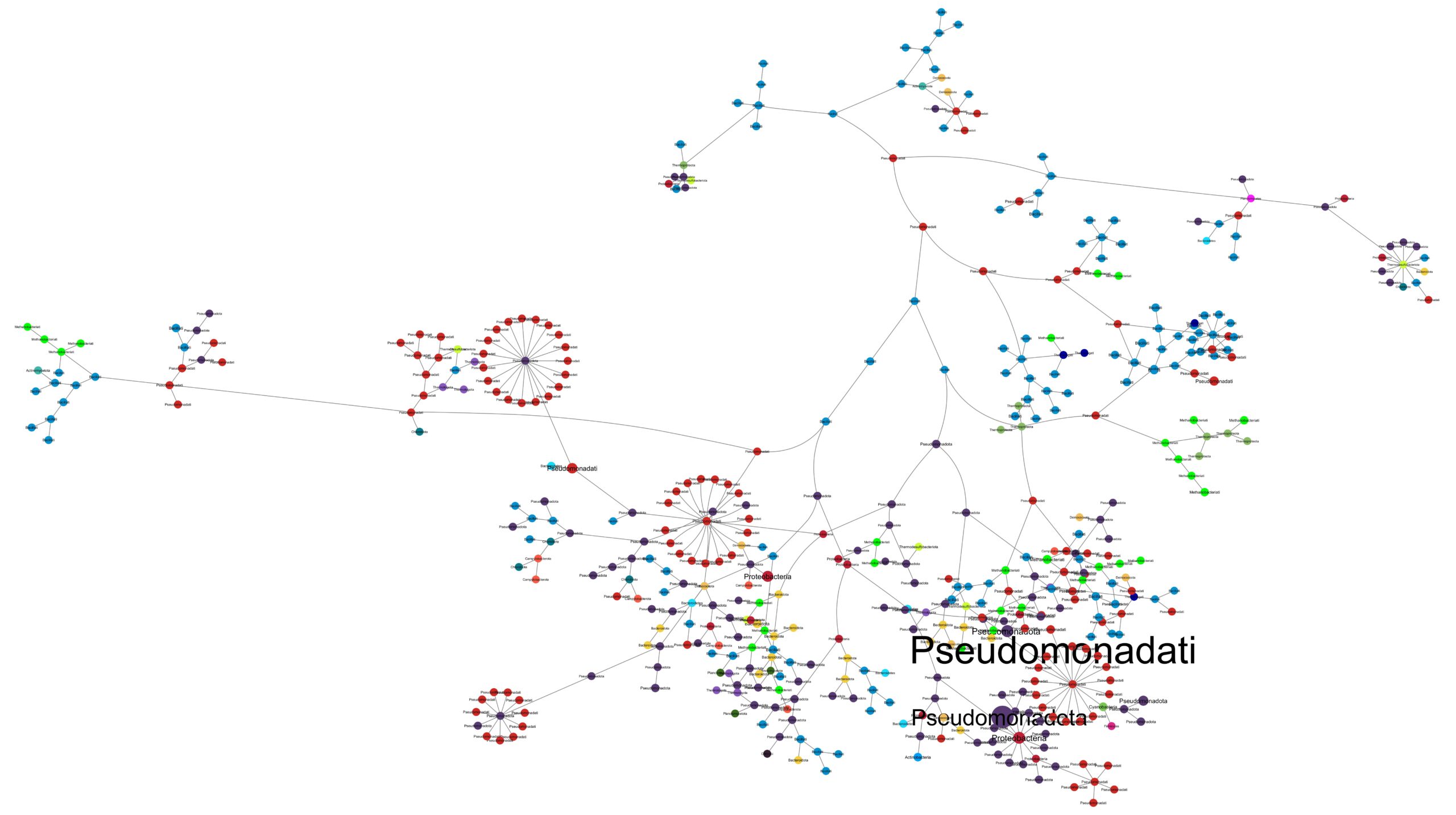 我们在Cytoscape程序中进行可视化我们的基因组向量化嵌入结果,可以发现相同颜色的基因组节点几乎都相互据集在一处。这个可视化结果同样支持说明我们对基因组中的代谢酶的注释结果信息进行TF-IDF向量化嵌入的结果可以比较好的将物种基因组进行区分开来,这些向量化嵌入后的结果数据用于下游的机器学习分析可以得到比较好的模型结果。